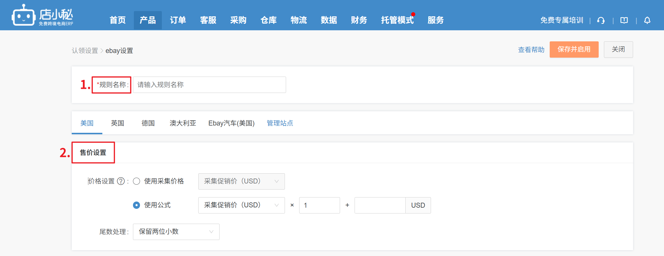 第三步:选择站点,设置规则(以美国站为例)