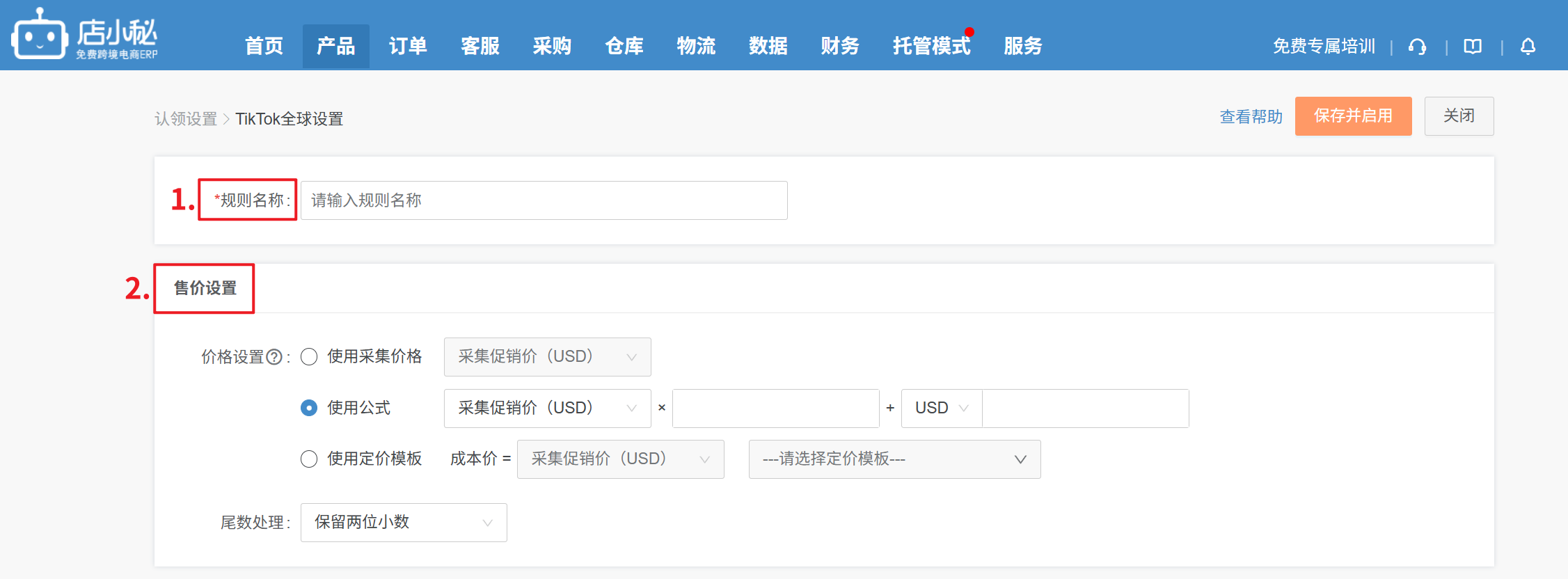 7、保存并启用:勾选店铺后,点击确认, 后续从通用采集箱认领到TikTok全球的产品,就会按认领规则修改