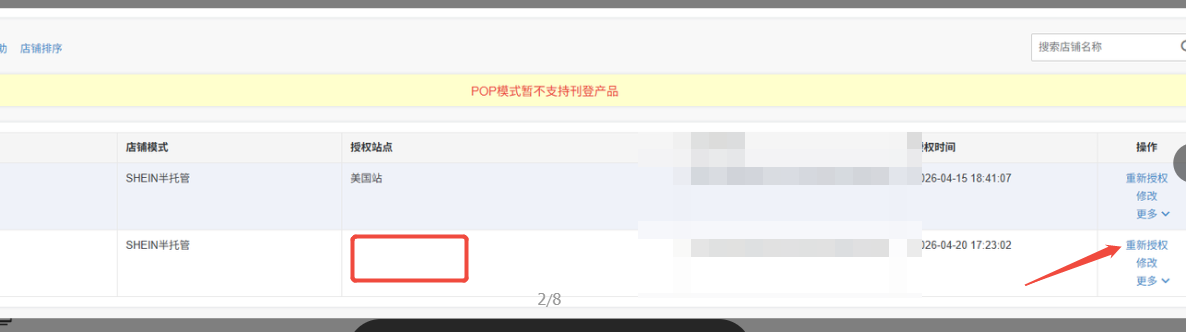 Q12:Shein店铺授权了不显示站点,产品的位置不显示店铺