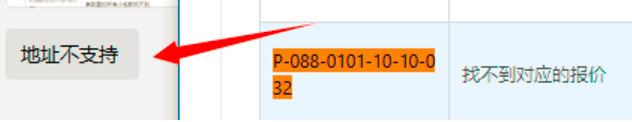 2、该报错对应错误码为P-088-0101-10-10-032(找不到对应报价)即揽收地址不支持,只能取消该大包,直接把包裹发到物流仓库