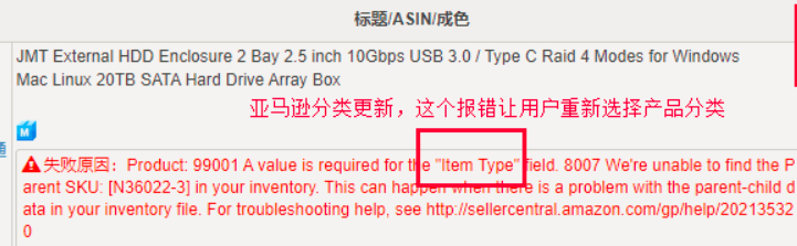 解决方案: 亚马逊分类更新,遇到这个报错重新选择产品分类