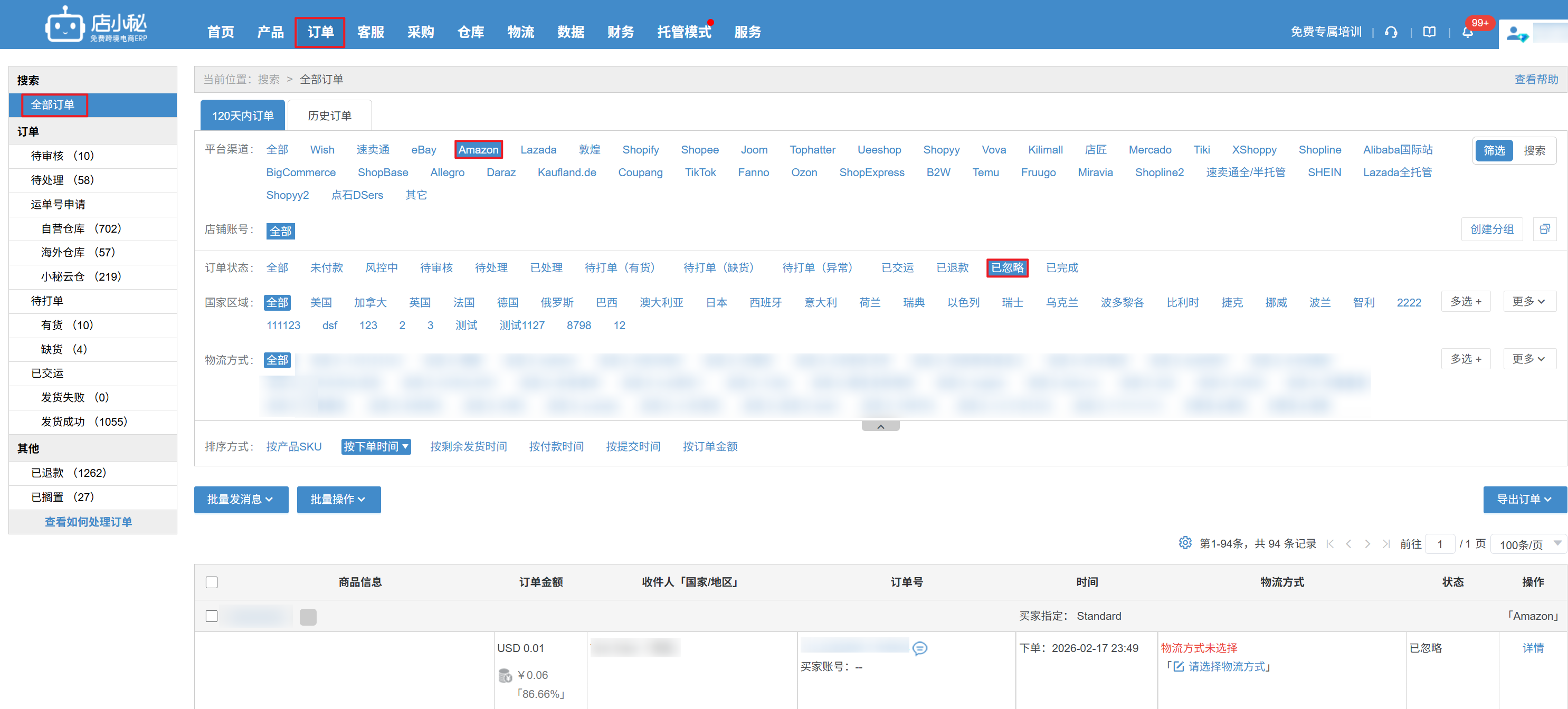 一、授权Amazon店铺后,小秘会自动同步Amazon订单,包括FBA订单和FBM订单