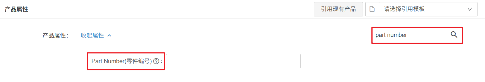 2、产品属性点更多属性,搜索part number 或者part_number