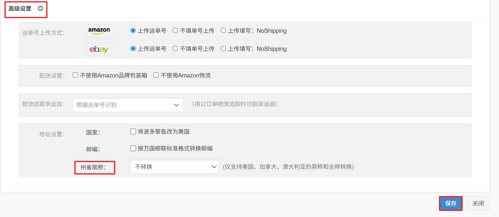 原因:州省需要填写二字码解决方案:1、针对美国、加拿大、澳大利亚国家的订单 可以到【报错订单-物流方式-点蓝色物流渠道—高级设置—州省简称选择转换州省简称—保存】后再申请 2、如果是其他国家的订单,点此查询 对应州省二字码 【订单详情—收货地址—编辑—州省信息填写二字码后—保存】再申请即可