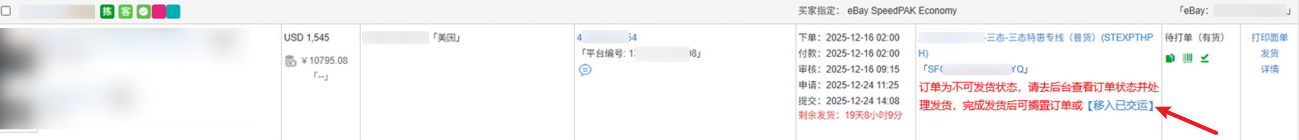 订单—eBay订单提交发货报错:订单为不可发货状态,请去后台查看订单状态