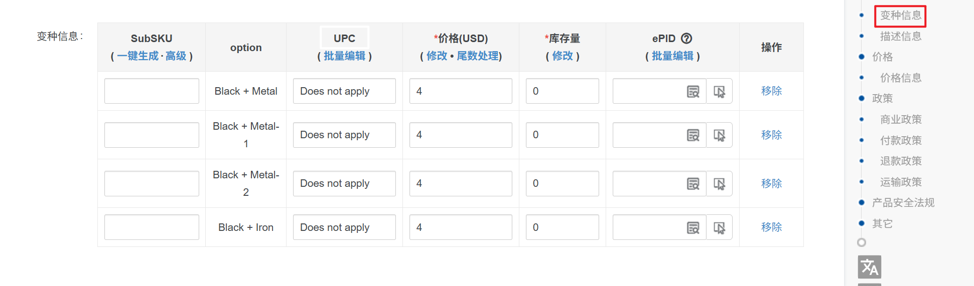 产品编辑页,核实品牌属性【UPC】填写的不对,需填写12位纯数字,不同的变种的UPC不能重复