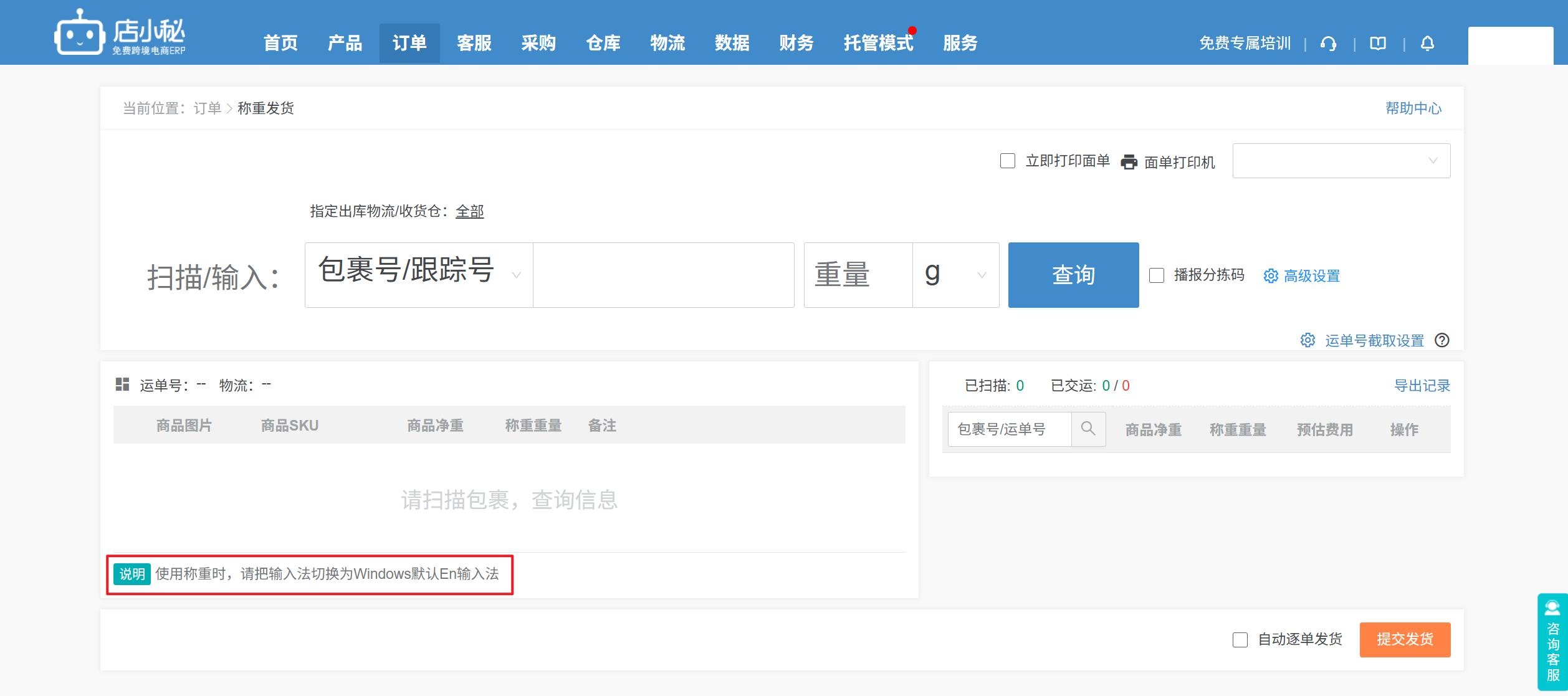 待打单(有货)—扫描发货为什么不会自动跳转到重量一栏?