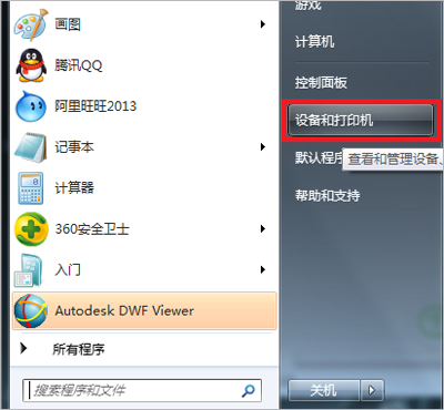 第一步:点击电脑“开始”选择“设备与打印机”。(Win10系统点击桌面左下角开始—设置—搜索打印机和扫描仪)