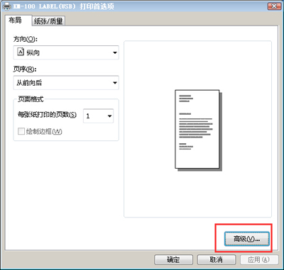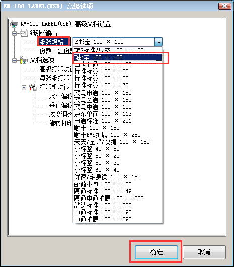 比如快麦打印机,则进入「高级」设置,纸张规格选择“100X100”,如图: