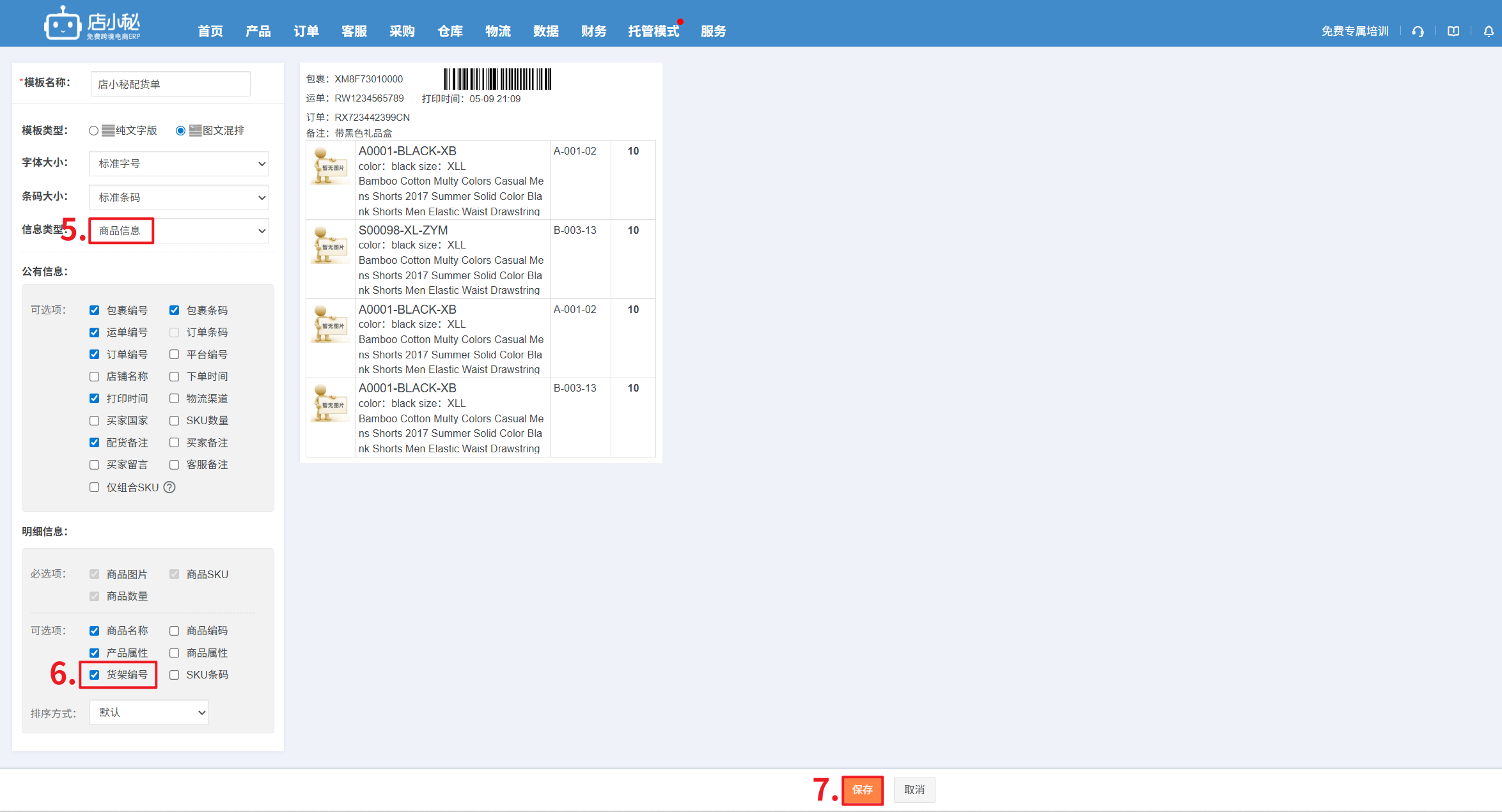 【1】拣货单/配货单的模板需要设置为商品信息