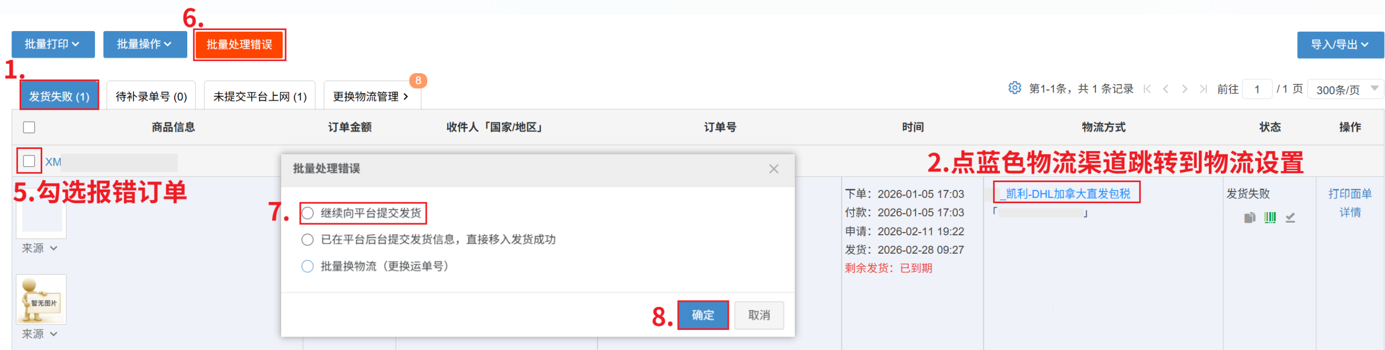 2、【发货失败—点击处理错误—继续向平台提交发货即可】