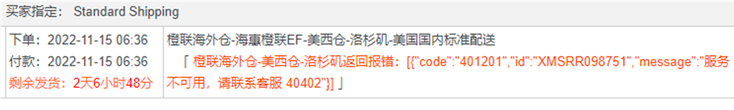 订单—橙联海外仓申请单号报错:服务不可用