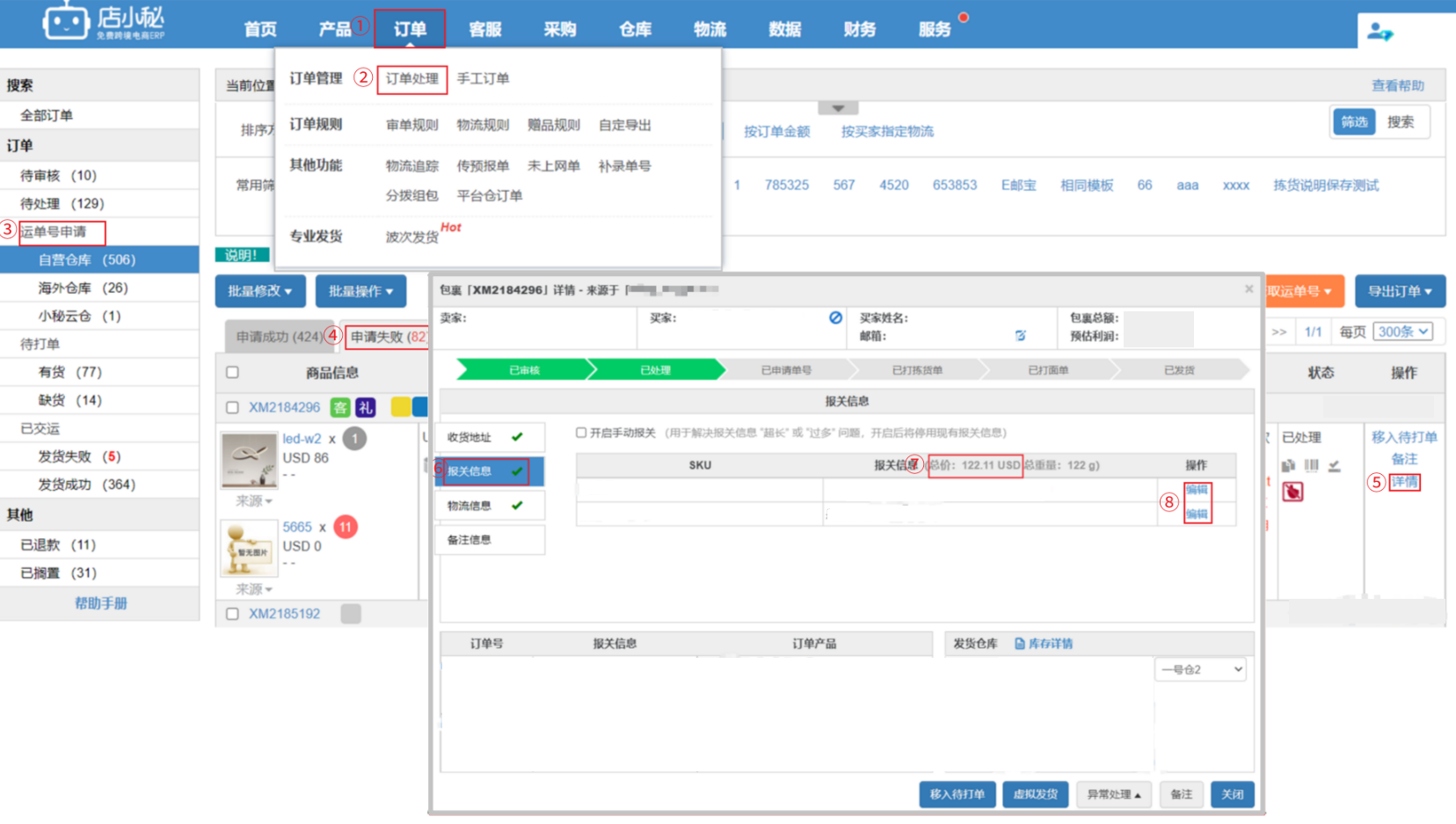 1、核实下订单详情-报关信息金额是否超出了申报范围