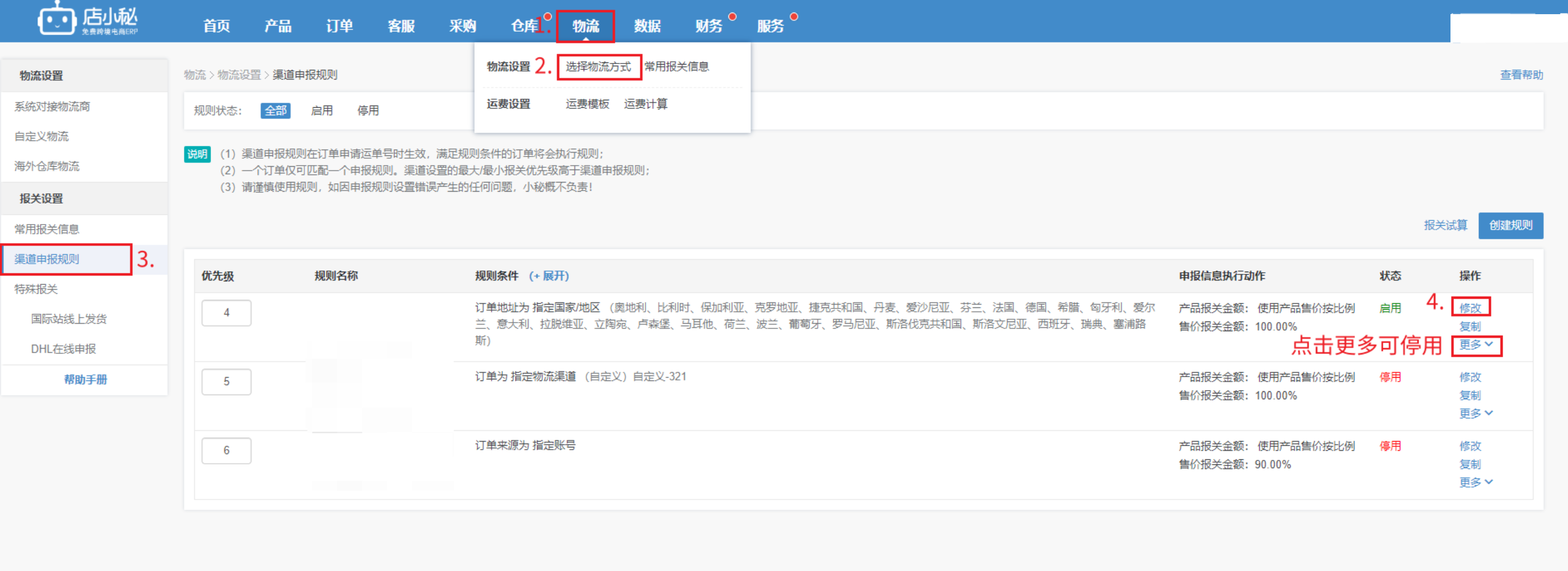 3、核实是不是设置了渠道申报规则