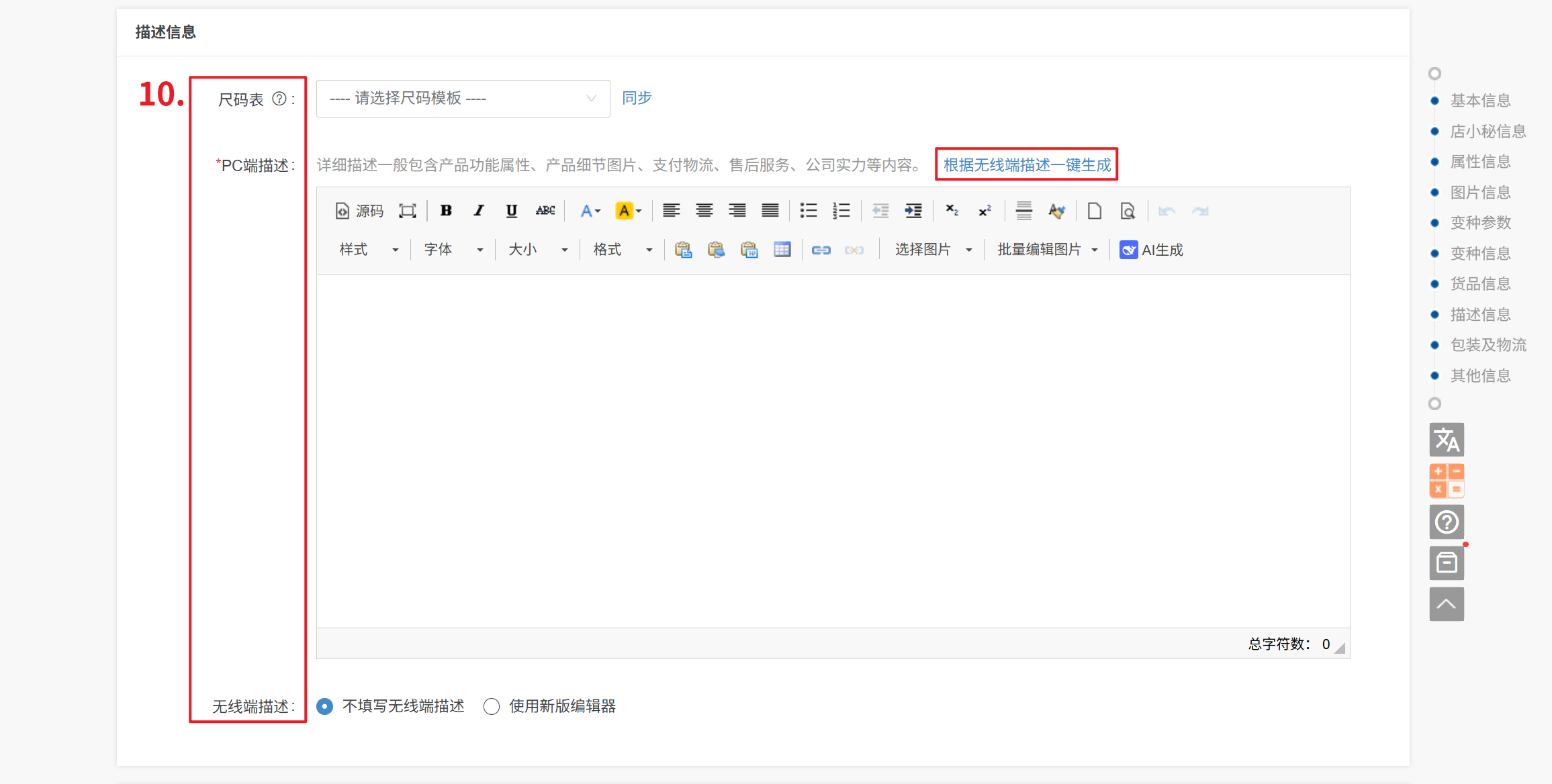 根据无线端描述一键生成:可以把无线端描述的信息一键生成PC端描述
