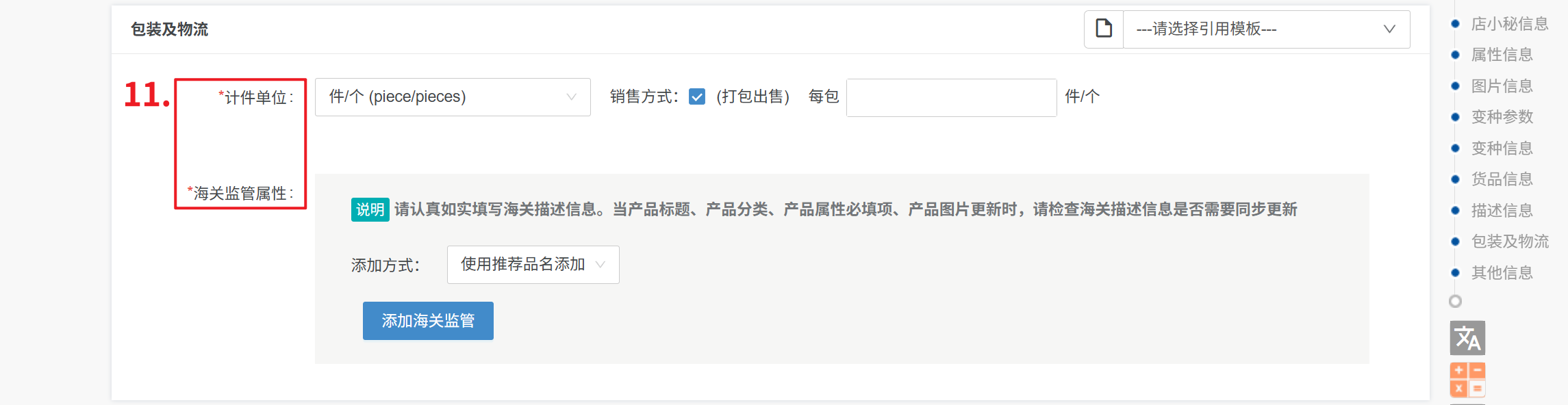 ② 海关监管属性:根据产品实际情况如实填写海关描述信息,决定产品关税比例是多少