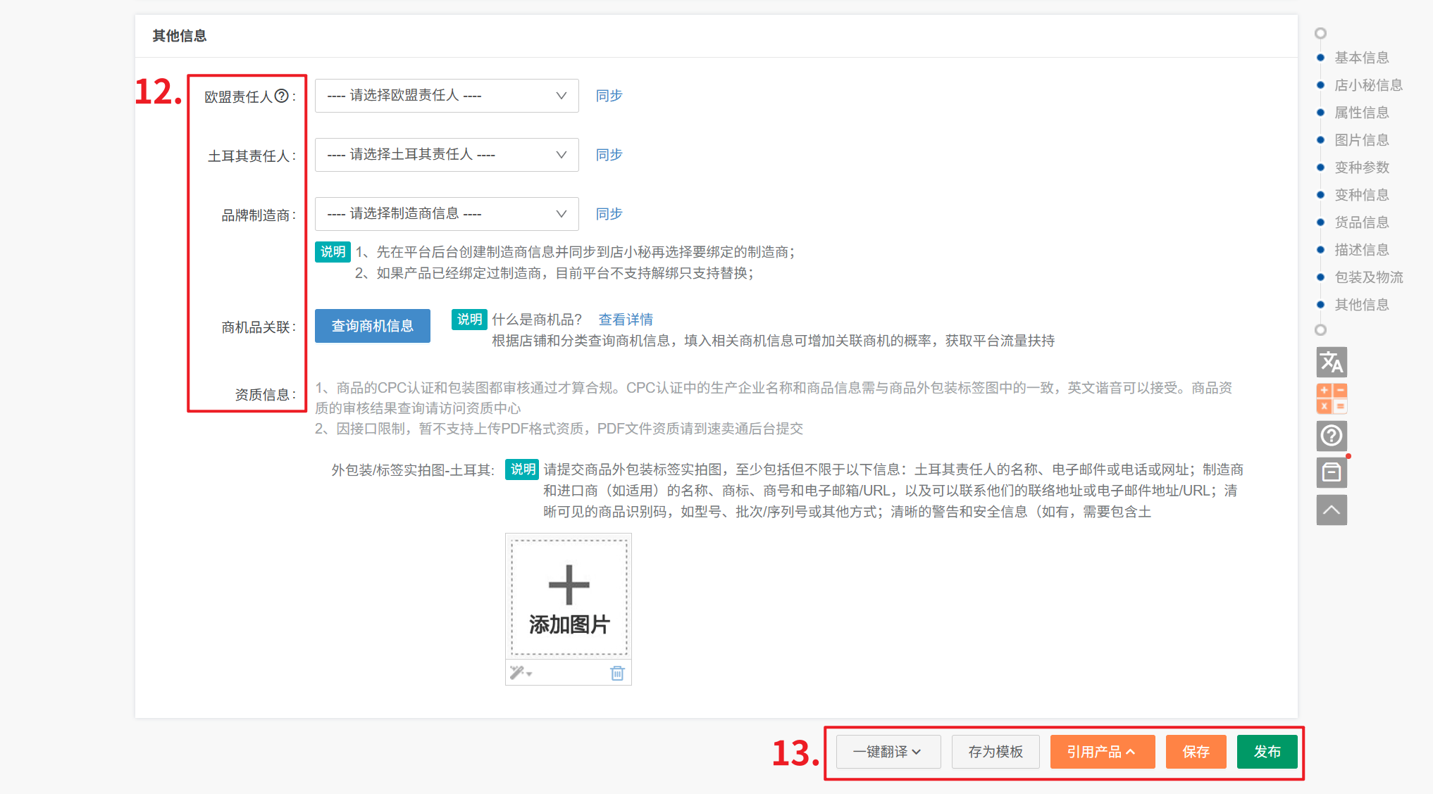 ① 欧盟责任人:欧盟境内销售部分产品(与CE合规商品范围高度重合),需提供欧盟责任人信息
