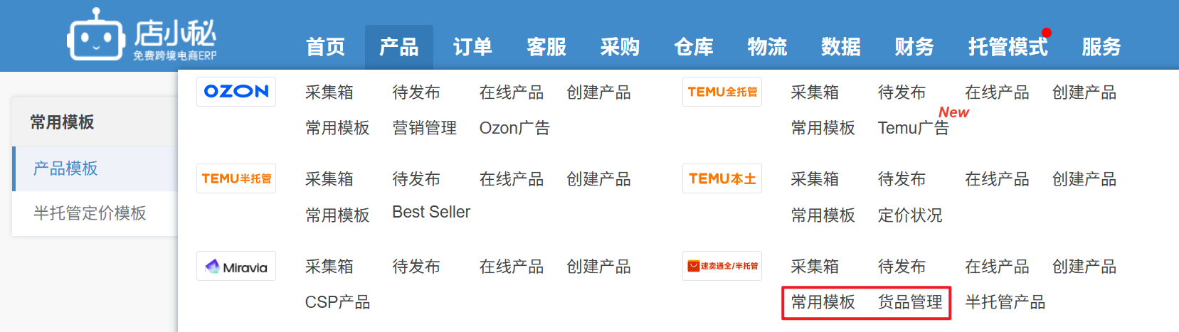 【商品列表】:展示的是发布的产品信息,小秘页面发布产品也是进入这里