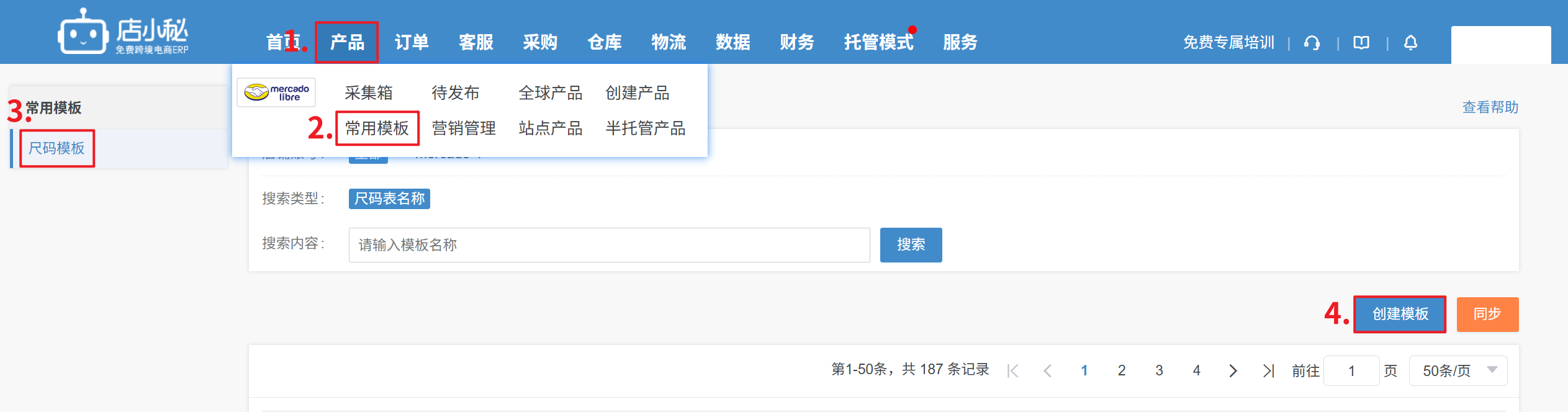 Q1:Mercado后台如何查看小秘页面创建的尺码模板?