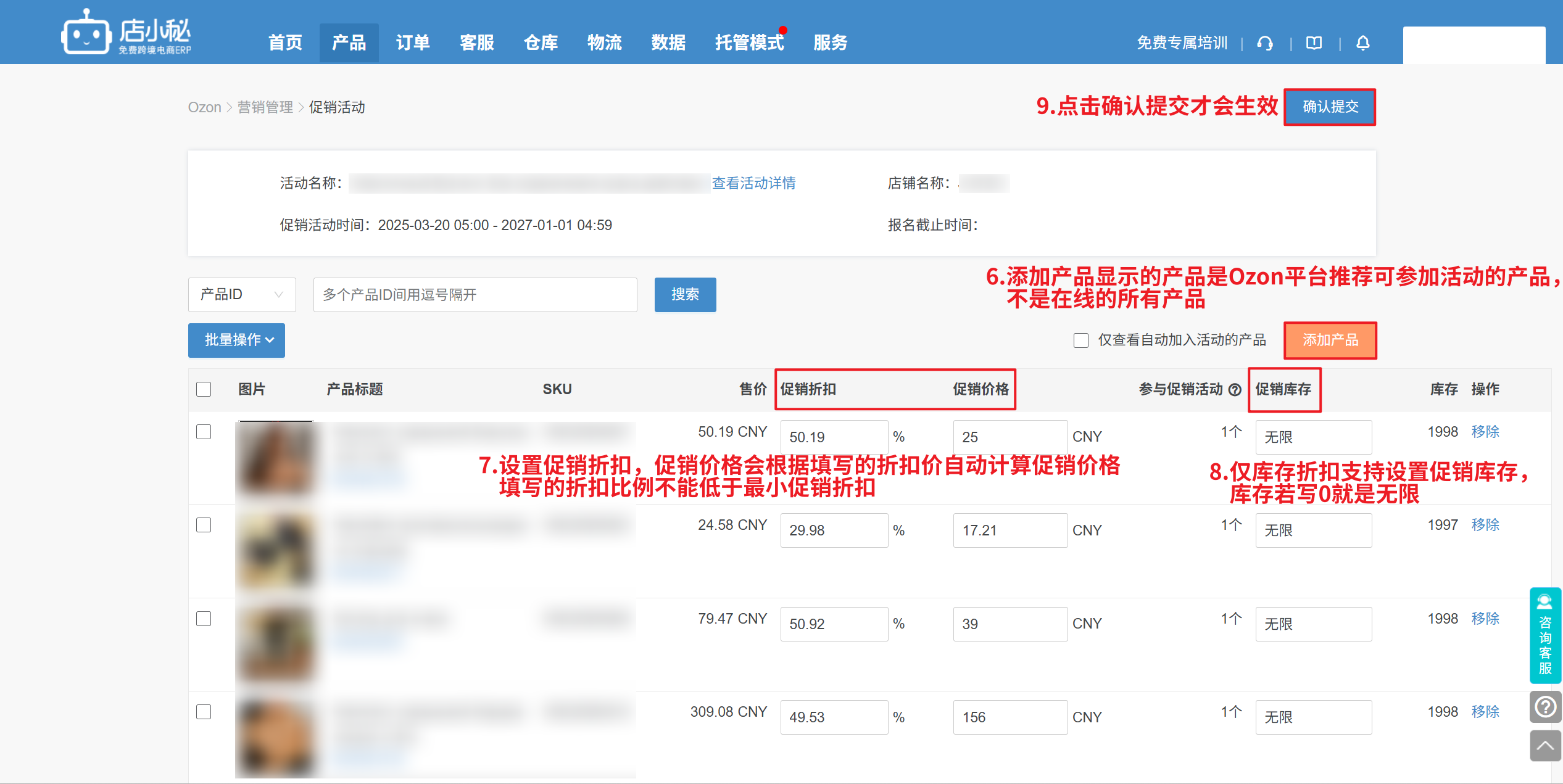 【4】Ozon热卖活动由于平台接口限制,小秘页面无法同步到活动类型,只能添加产品,无法修改活动折扣