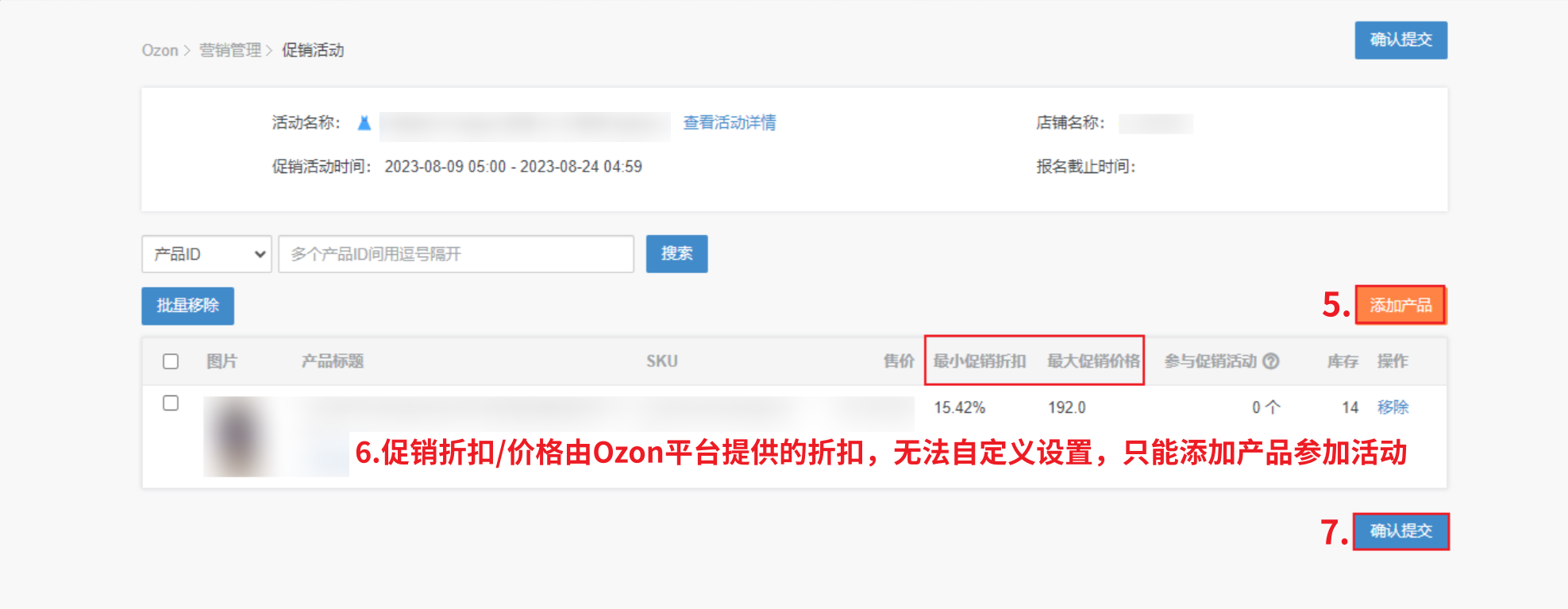 【Ozon—营销活动—促销活动—同步活动—管理活动—添加产品—确认提交】