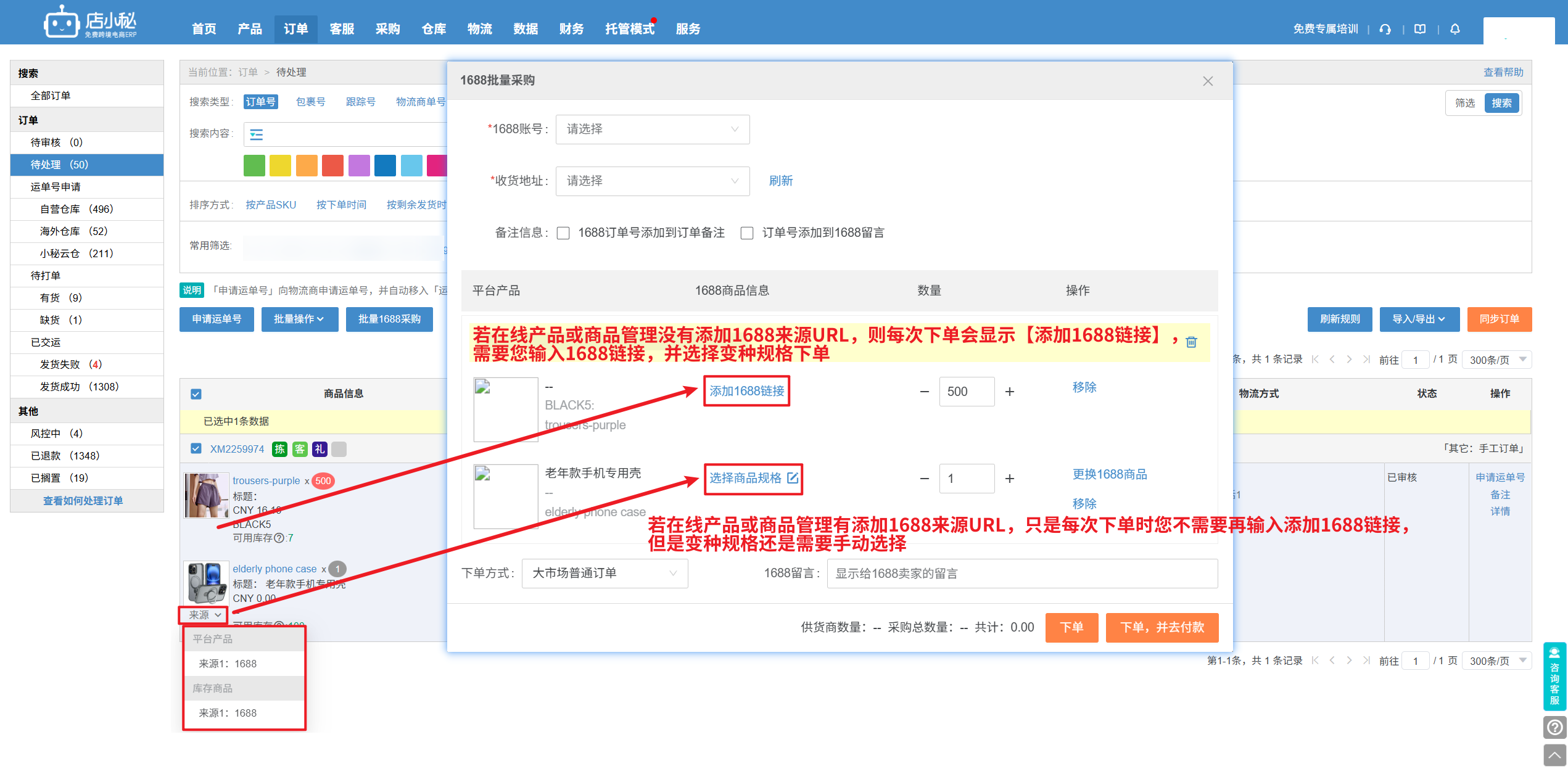 即使在线产品和商品管理添加了1688来源URL,只是每次下单时不需要您再次输入添加1688链接,