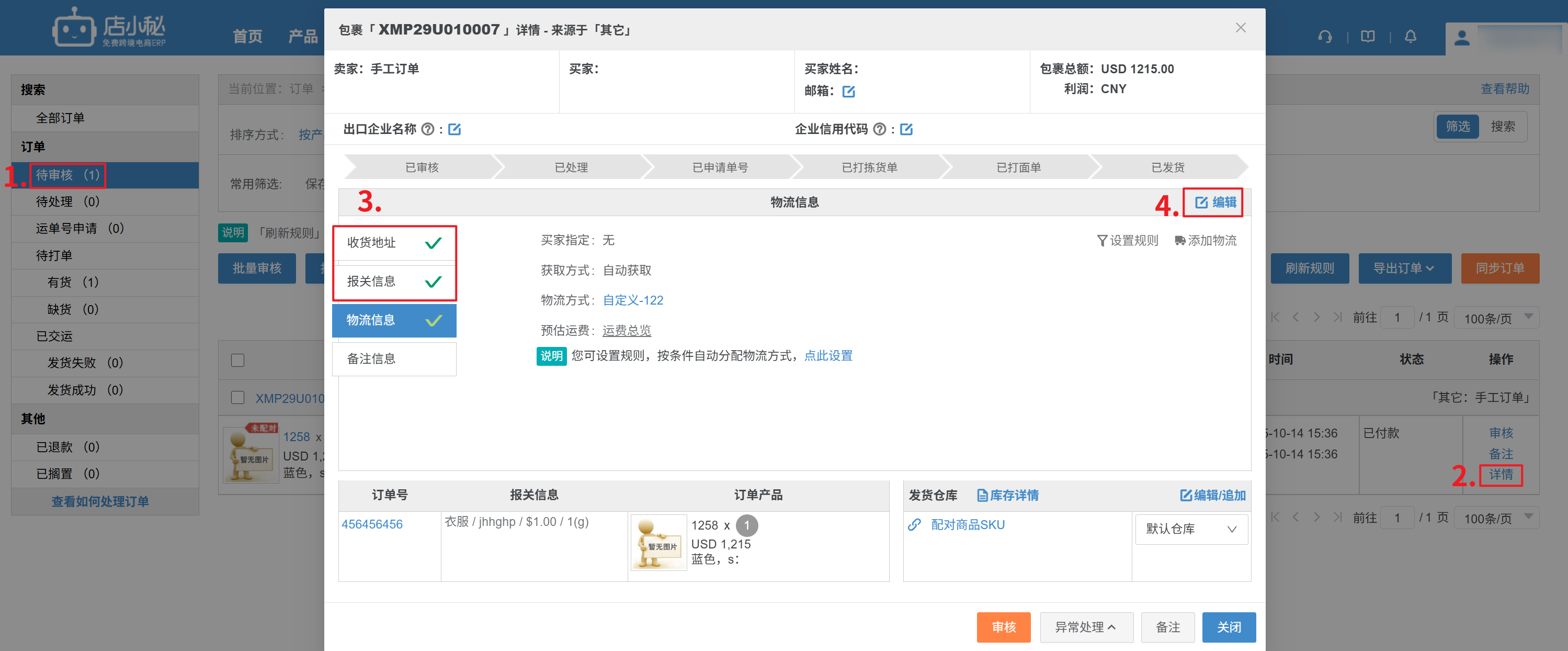 【1】待审核状态,报关无法批量修改,只能审核后,到待处理批量编辑!