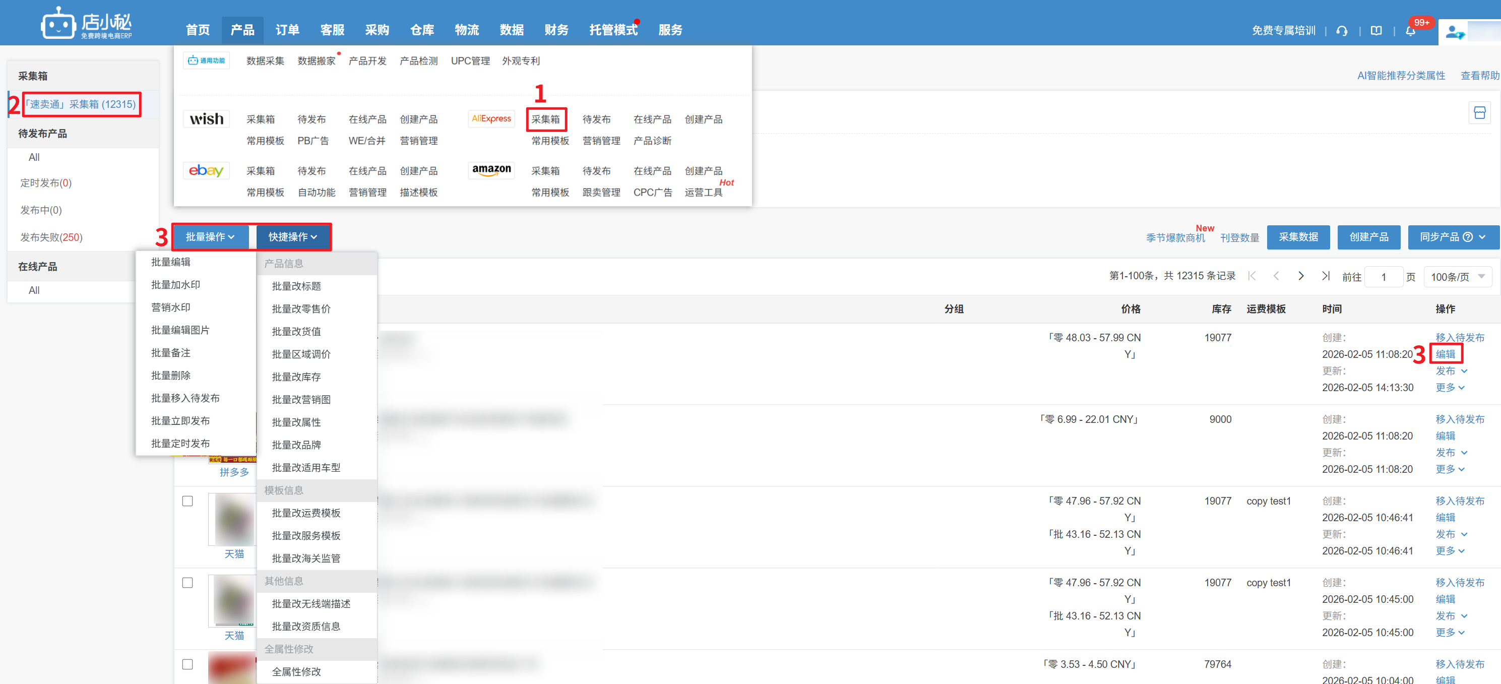 第四步:【产品—速卖通采集箱—单个/批量编辑产品信息后,发布即可】