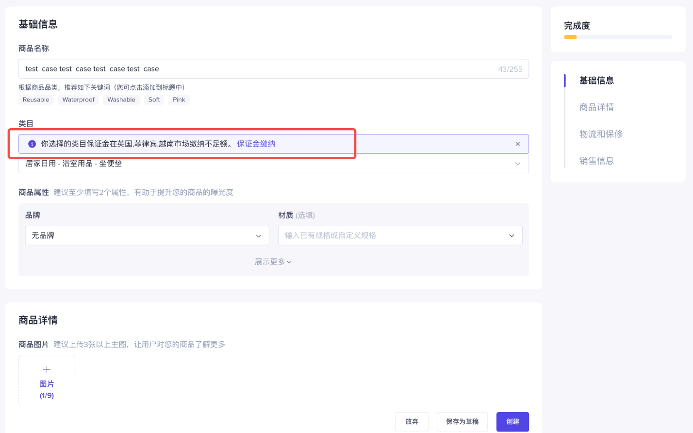 说明:店铺保证金是TikTok Shop在卖家注册过程中收取的一笔款项,用于保护TikTok、买家和用户, 防止卖家在TikTok Shop经营期间违反适用条款、法律、法规、规则、政策和/或其他要求。 TikTok后台保证金相关说明请 点此查看原因:发布产品店铺保障金余额不足,没有达到产品分类或者站点保证金收取的标准报错