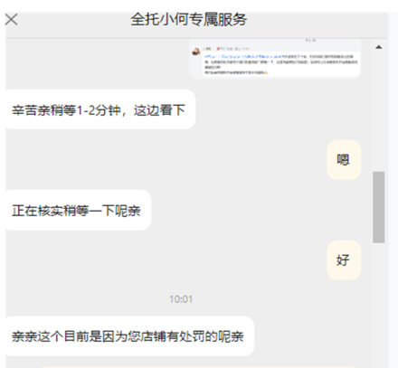 速卖通回复是店铺面临处罚,需要联系速卖通平台客服解禁后可以查看图片