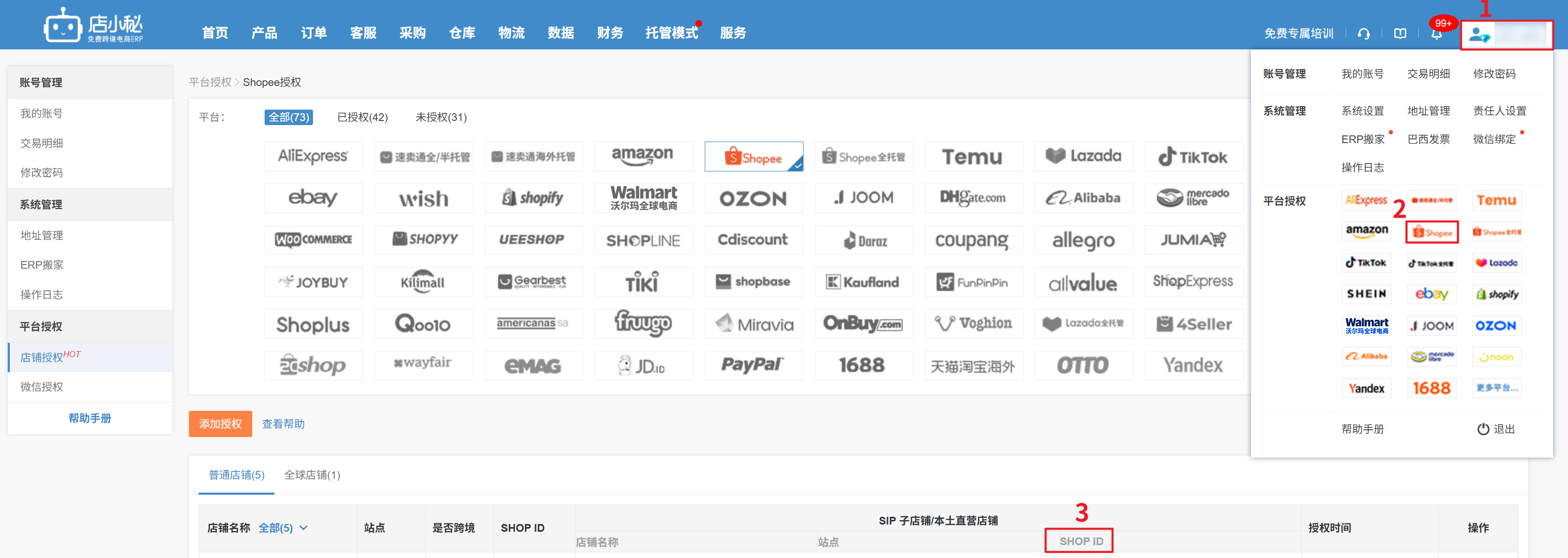 另外,店铺ID可以在店小秘店铺授权页面查看:【店小秘用户名—Shopee—Shop id查看】