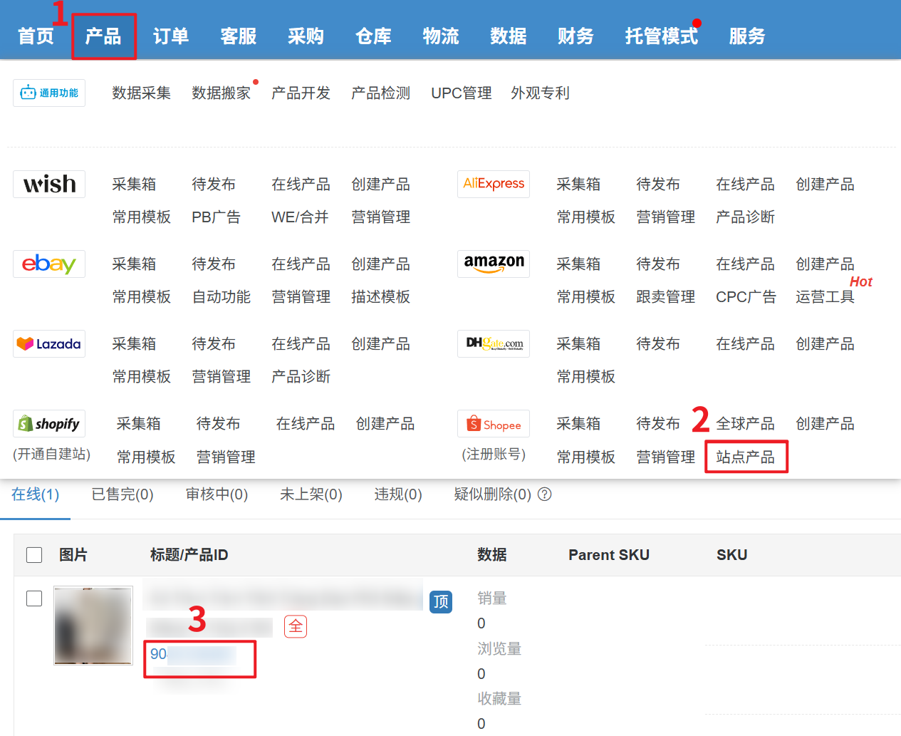 【小秘页面:产品—在线产品—标题/产品ID展示的一串蓝色的数字(产品ID)】