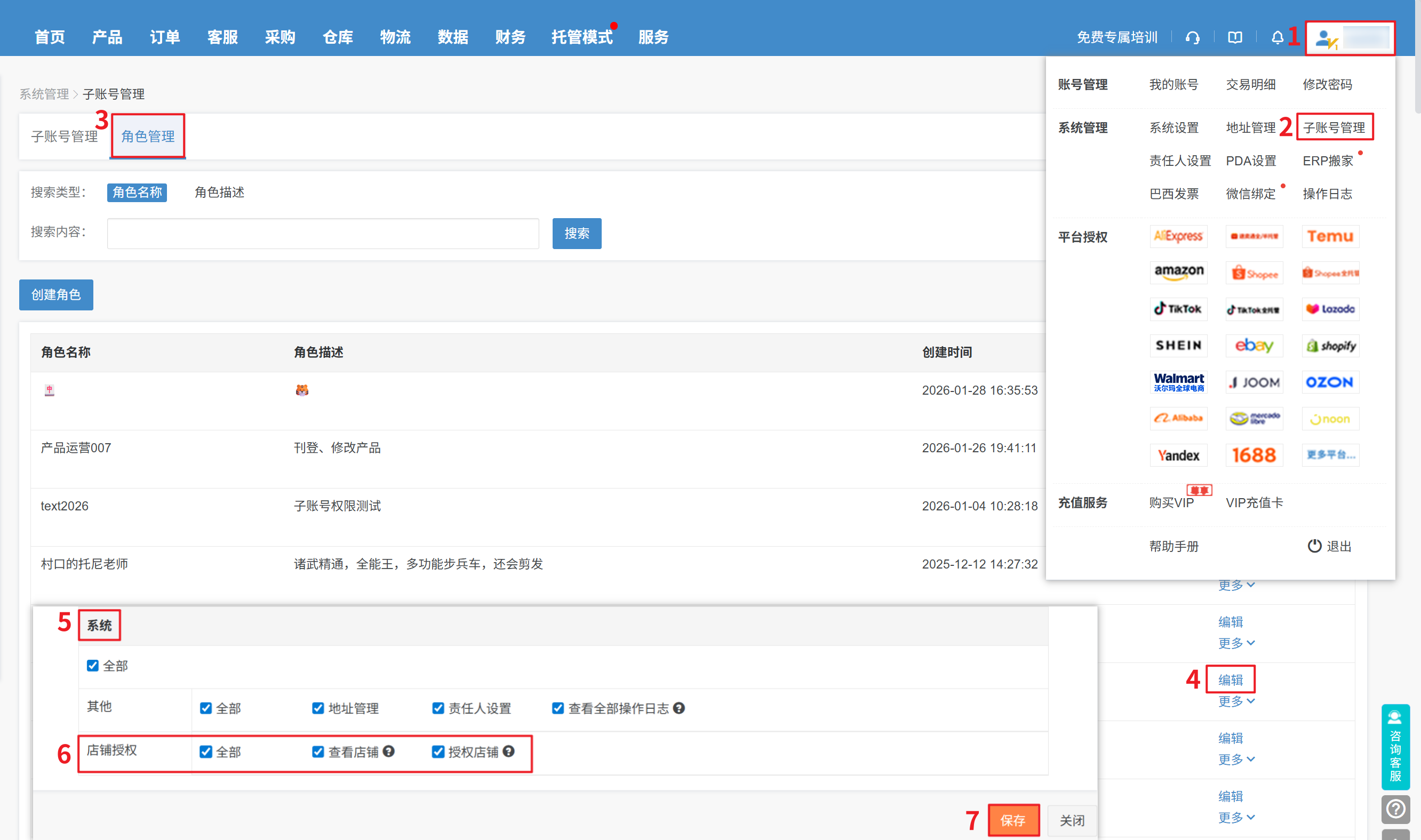 如果是子账号,需要主账号设置子账号店铺权限才可以查看