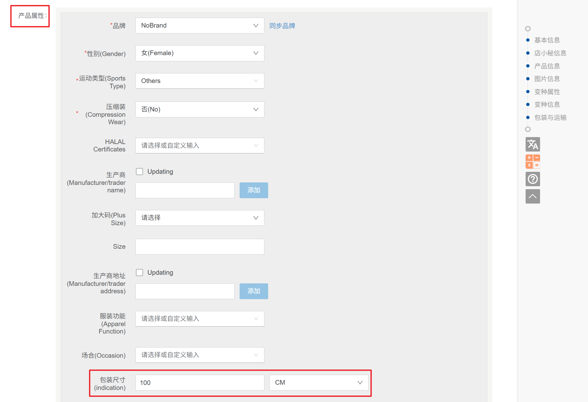 点编辑,核实产品属性中本身有带单位的属性,把单位值删除再发布,比如包装尺寸,写100,不要写100CM