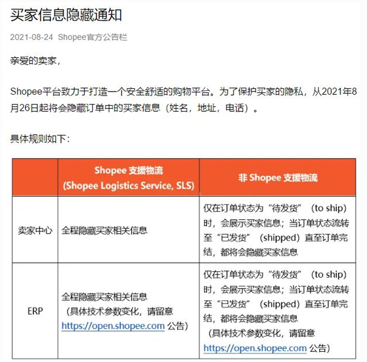 平台官方说明:https://open.shopee.com/announcements/581?category=3&is_top=true