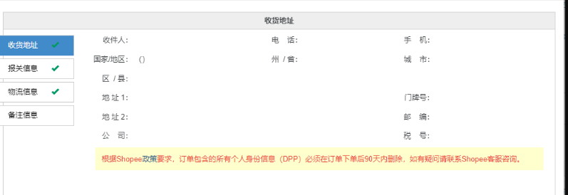 A1:Shopee平台政策更新 ,Shopee订单所有买家信息不允许导出包括地址,90天内的信息可以在系统展示,90天后的不允许展示