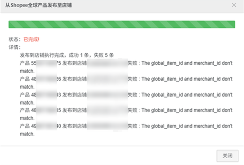 产品—Shopee全球产品发布至站点报错:The global_item_id and merchant_id don't match
