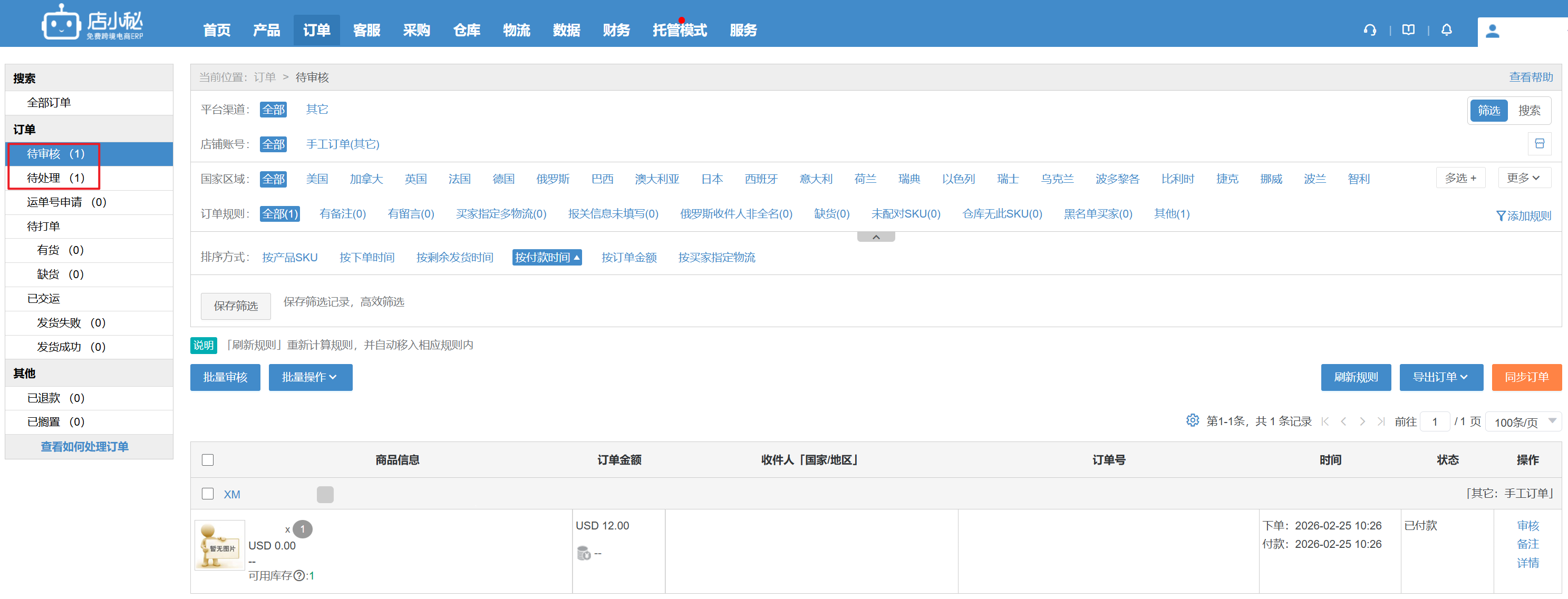 第二步:创建成功后,在【待审核/待处理】状态可找到该订单,再按正常的 操作流程 处理即可