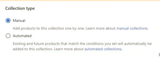 ① 如果同步后没有显示Collection,可在Shopify的 店铺后台下图位置,选择手动然后再在小秘页面进行同步,
