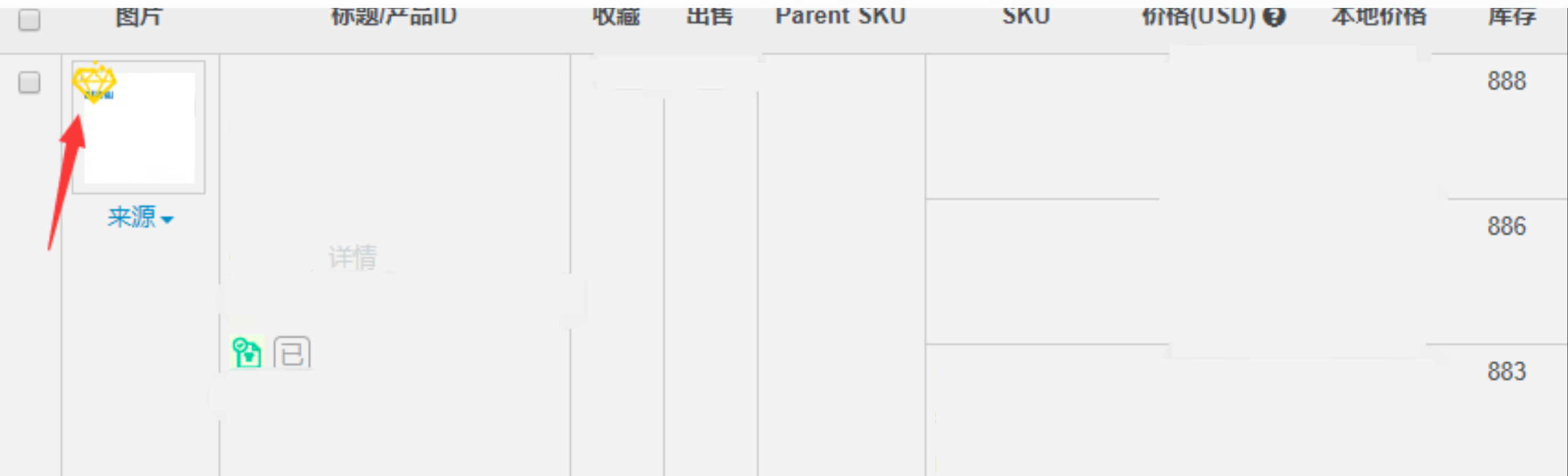 加钻的产品,Wish后台在产品列表的图片中会标注黄色的钻石图标,在店小秘产品列表的图片中也会显示钻石标志。