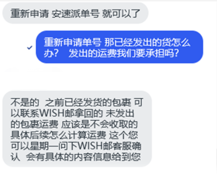 Wish邮回复因收件地址更新了,所以订单提示运单号取消了