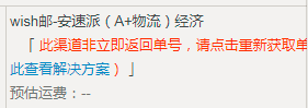 订单—Wish邮申请单号报错:此渠道非立即返回单号