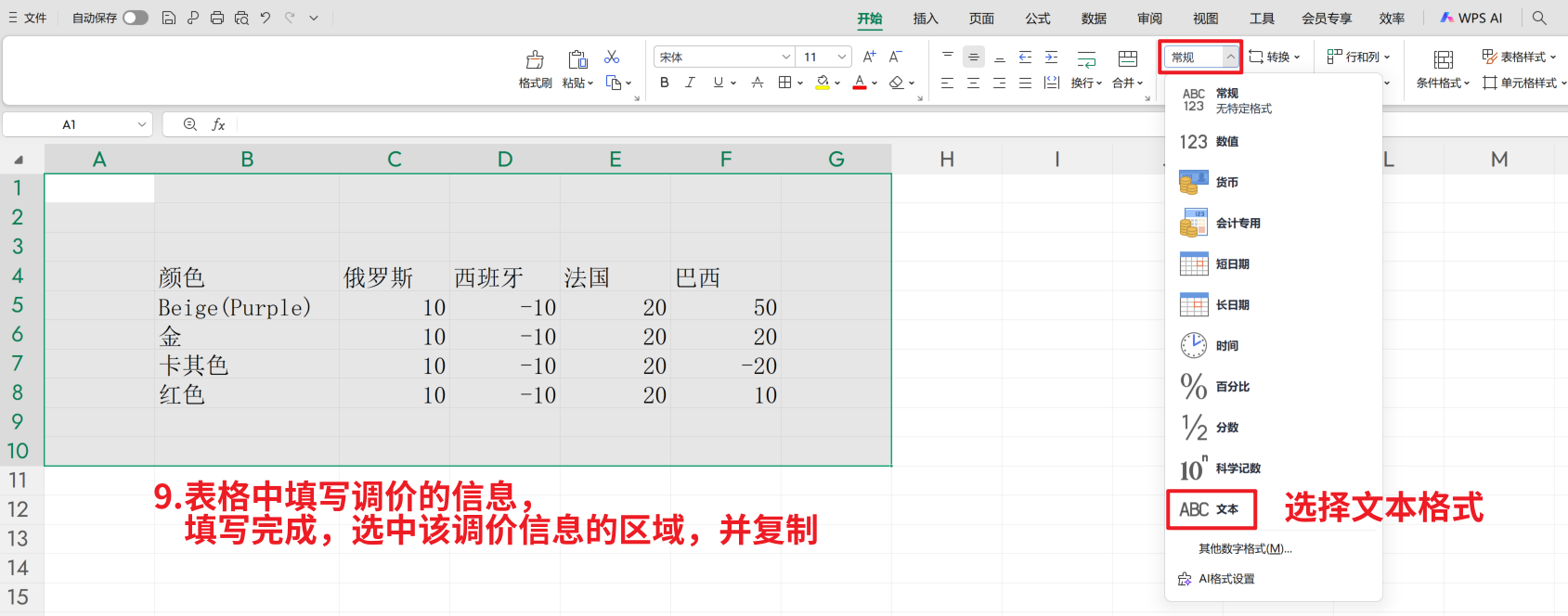 第二步:【复制成功—打开Excel—粘贴—输入对应国家调价信息—复制调价信息的区域】