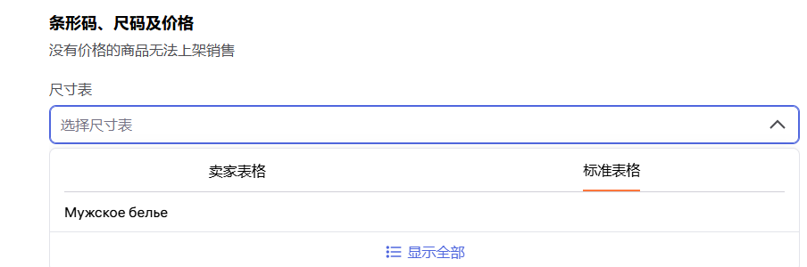 Q1:野莓在小秘和店铺后台选择一样的分类,为什么后台有尺寸表(卖家表格,标准表格)的选项,小秘没有?