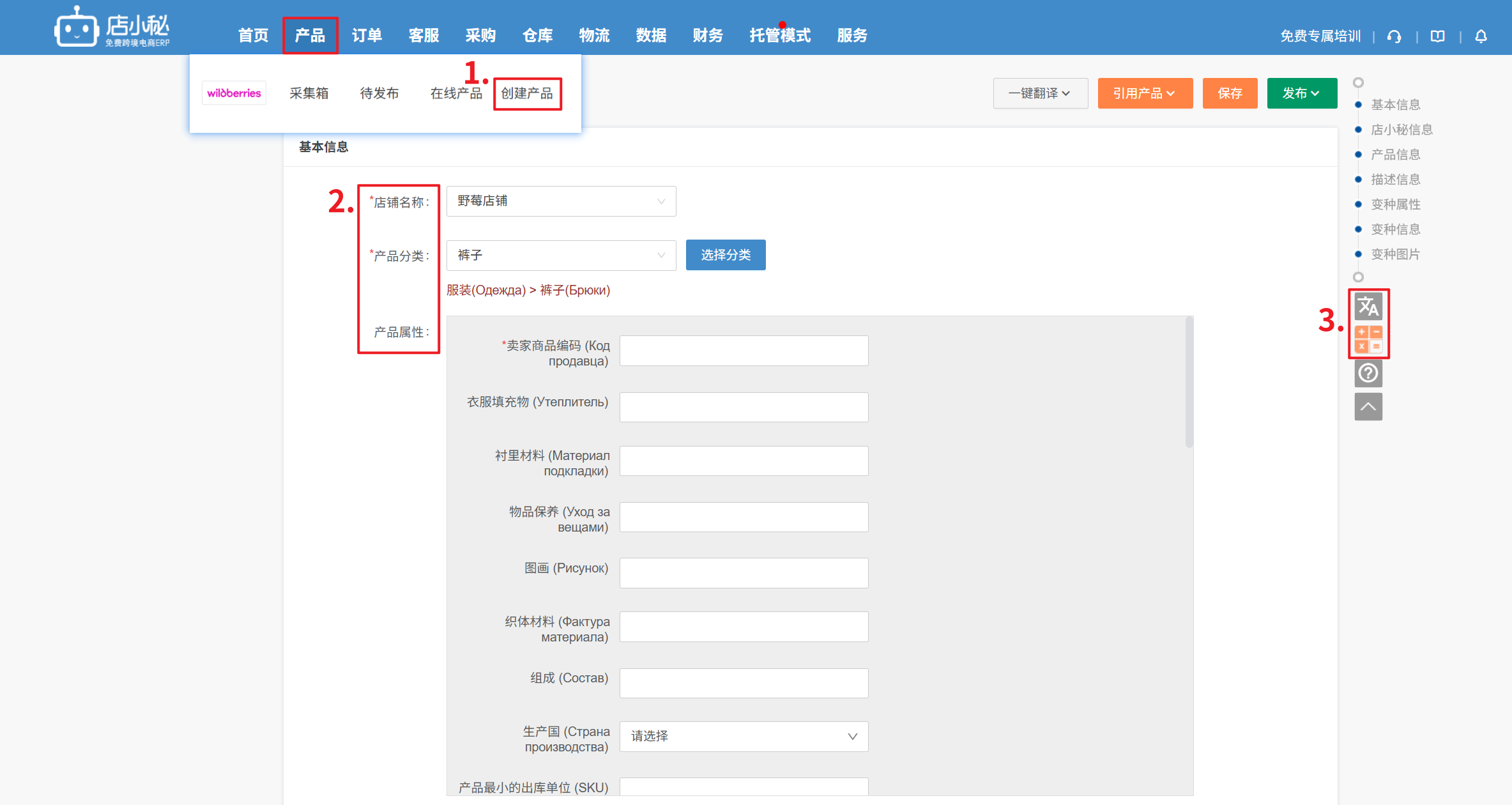 ② 数据搬家:将在同一个小秘账号下的其他平台店铺的产品搬家到野莓平台,快速发布