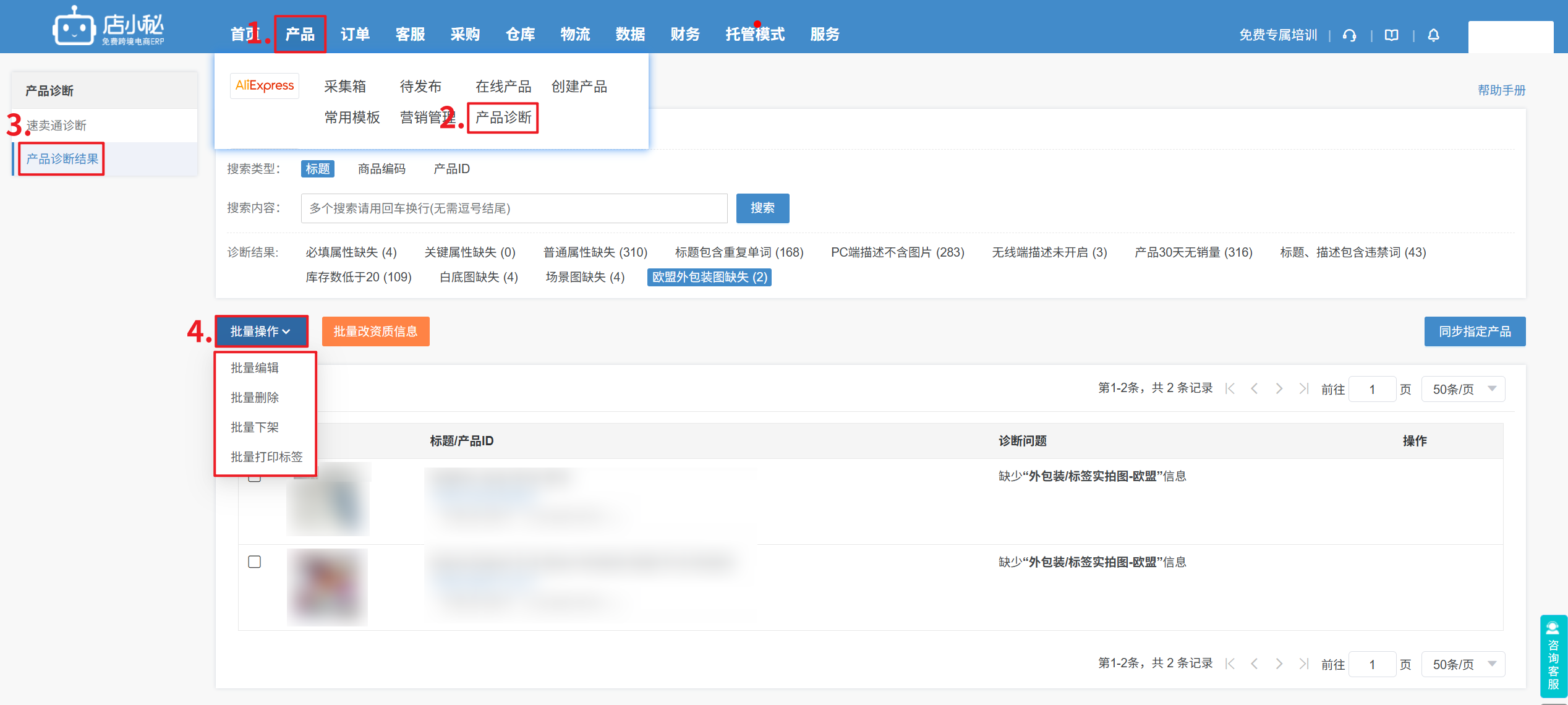 定义:每天定时诊断速卖通在线产品,将符合诊断项的产品归类展示,方便统一优化
