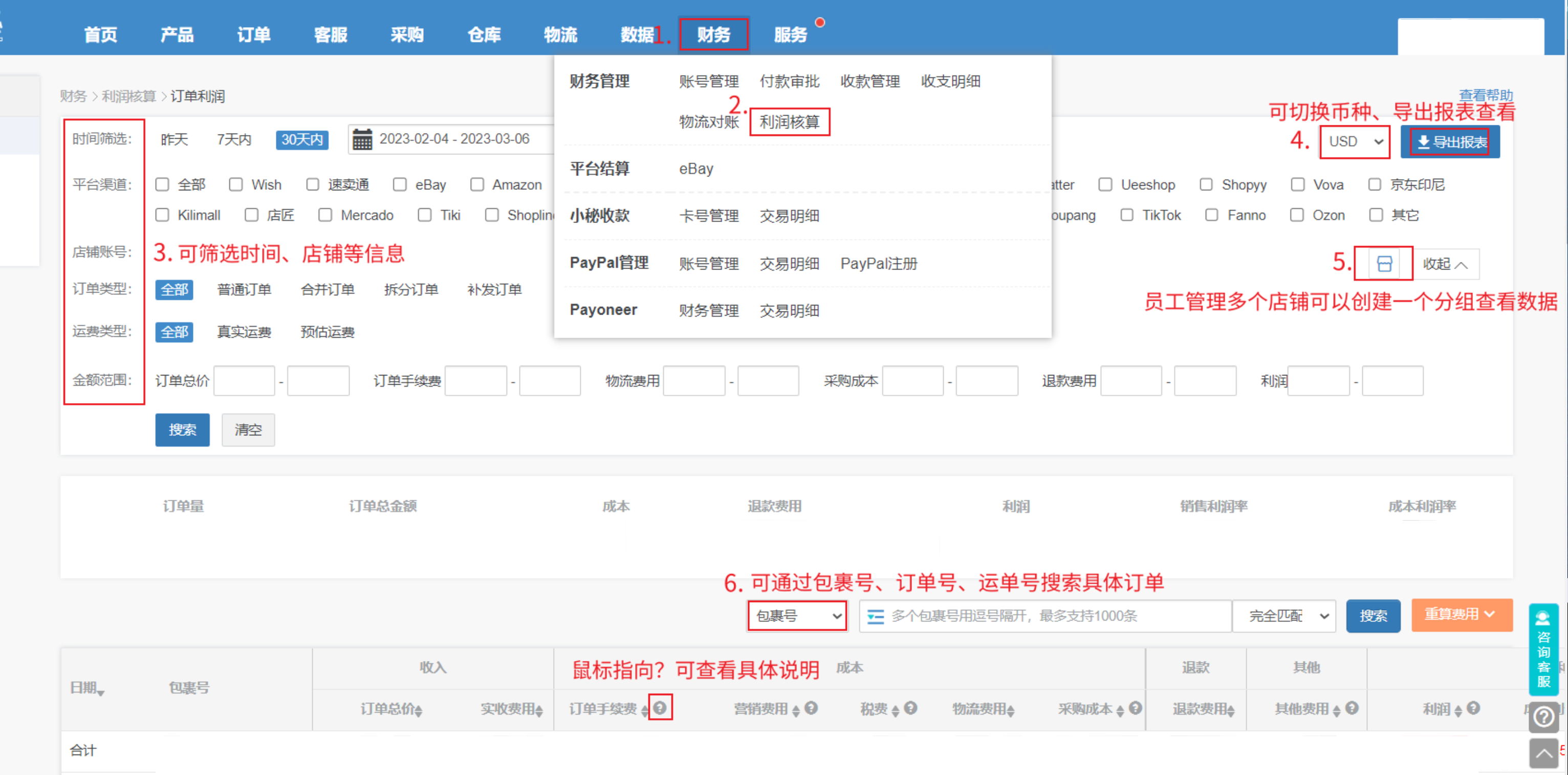 数据统计:统计订单利润数据,方便计算成本及利润。