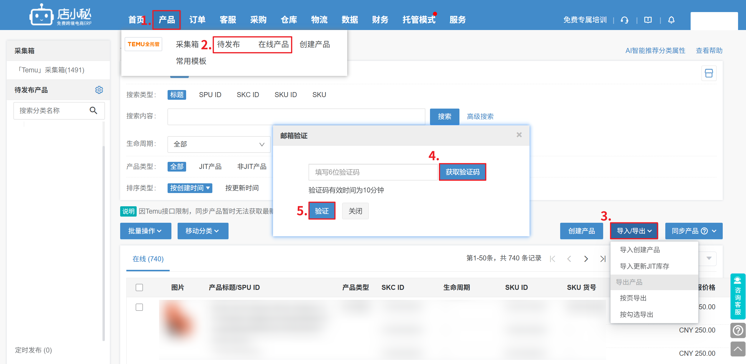 注意:为保证产品信息的安全性,可开启邮箱验证,导出产品数据时会给邮箱发验证码