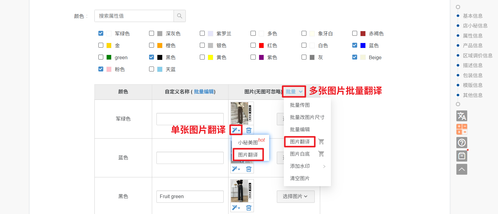 【2】产品主图、变种图、描述图片都可以翻译【3】主图、变种图可单个或者批量翻译