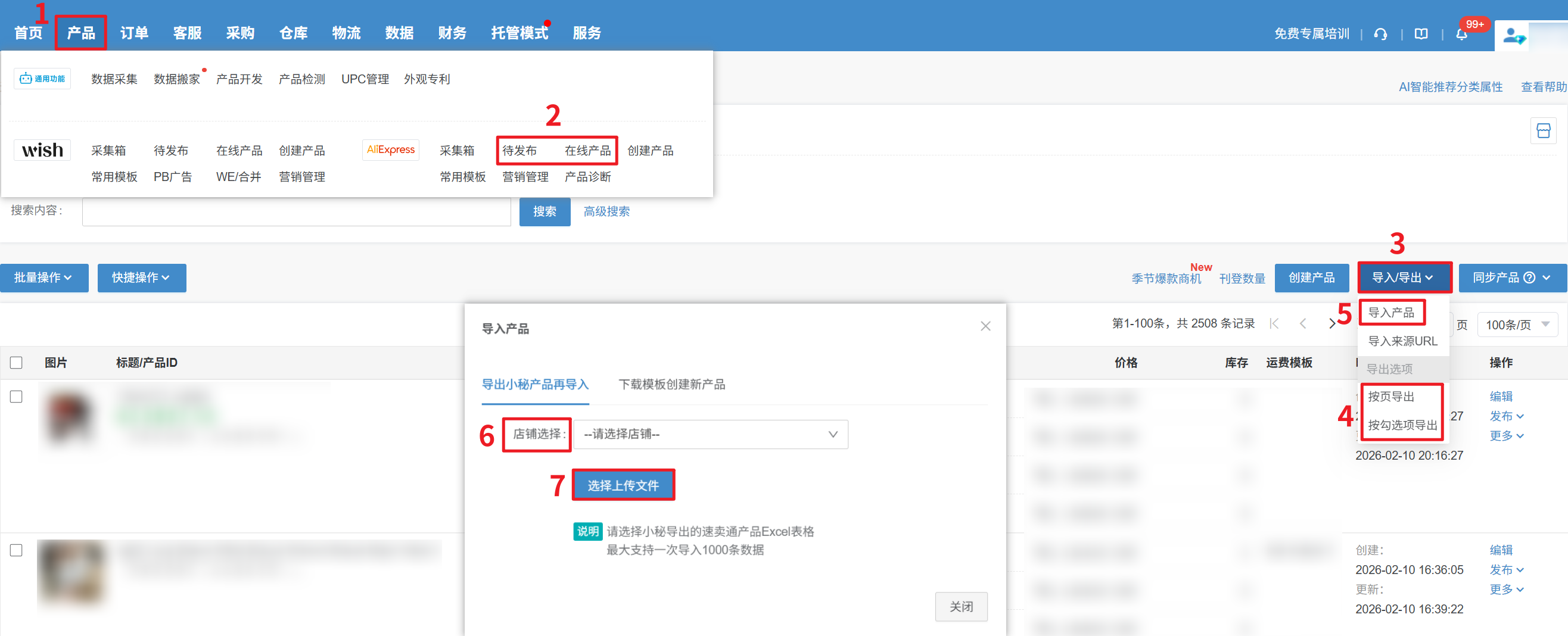 例如:如果是导出速卖通产品,就选择导出小秘产品再导入这个选项